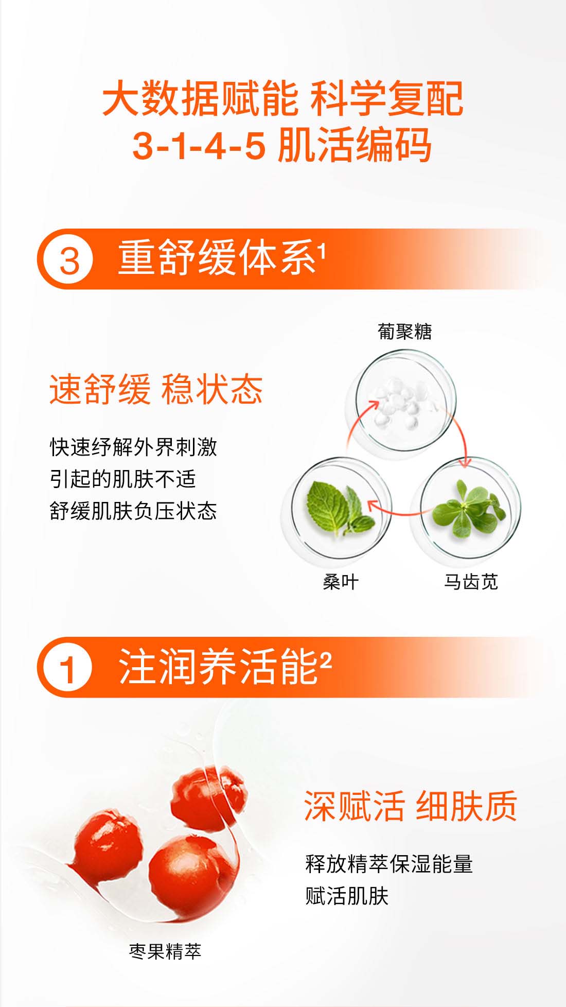 3重护肤节律,翻转失衡危「肌」,吸收快速无油腻感,营造柔嫩肤感。